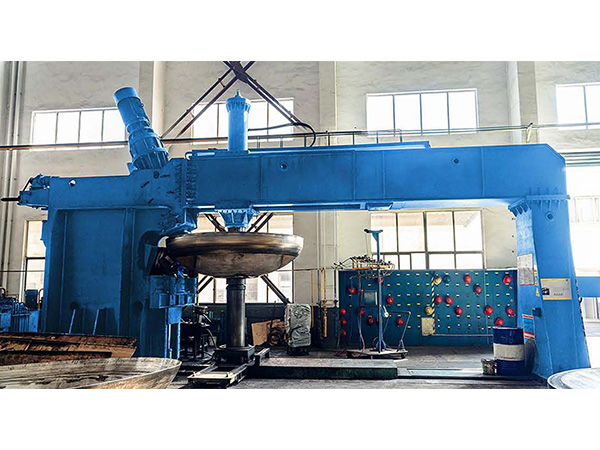 本機(jī)是封頭旋壓成形專用設(shè)備,使封頭在加熱狀態(tài)下旋壓成形。主要用于直徑1.7米以到直徑4.5米,各種規(guī)格封頭的熱旋壓成形。