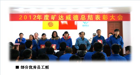 各位員工: 2012年度,是公司經(jīng)歷嚴(yán)峻考驗的一年。面對困難,全體干部與員工沒有退縮,大家精誠合作,共度時艱,為公司解危并最終平穩(wěn)過渡做出了應(yīng)有的貢獻(xiàn)。 一年來,公司涌現(xiàn)了一批令人感動的先進(jìn)事跡和先進(jìn)人物。為在全公司形成爭先創(chuàng)優(yōu)的良好氛圍,經(jīng)研究,決定對評選出的7名模范員工、18名優(yōu)秀員工進(jìn)行表彰,以資鼓勵。希各位員工能向這些模范、優(yōu)秀員工學(xué)習(xí),認(rèn)真工作、積極生活,為把“威德封頭”早日打造成為第一封頭品牌做出更大的努力! 附:模范員工、優(yōu)秀員工名單 常州曠達(dá)威德機械有限公司 2013年1月28日 獲獎名單如下: 模范員工: 仇官印 錢曉勇 賈艷偉 張奇勇 索春鳴 劉向貴 吉華平 優(yōu)秀員工: 丁余民 顏文君 李樹武 李慧 韓俊 張紅山 黃陸強 張宜寶 丁旭 吳康 虞國平 秦曉華 杭茹玉 王佳 陳曉 叢小蘭 錢惠興 顧和琴  |
