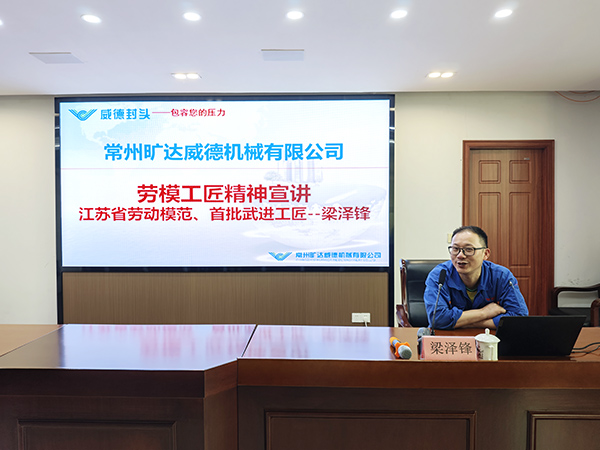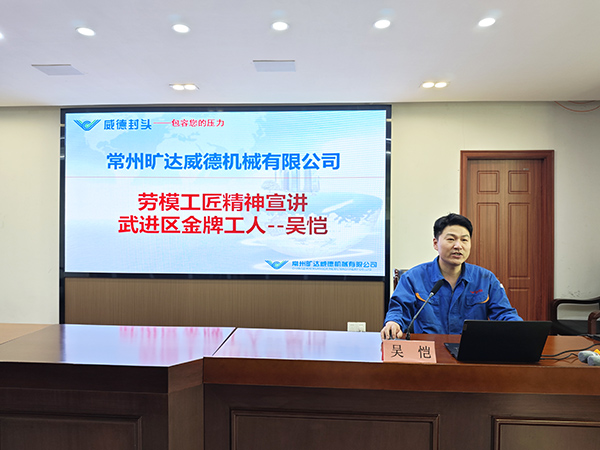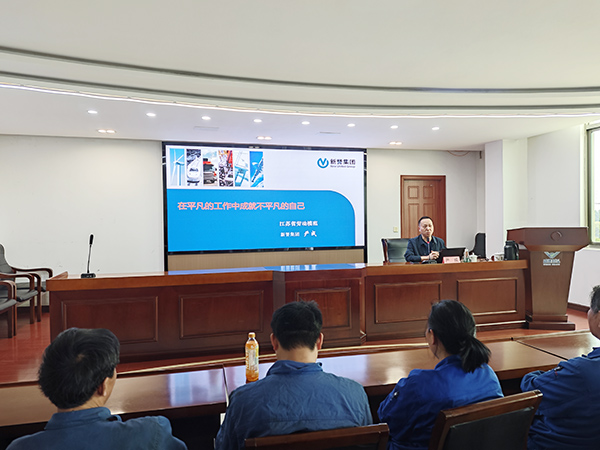 培訓伊始,新譽集團的江蘇省勞模嚴成給全體一線員工帶來了“勞模工匠”精神宣講,讓大家深刻感受到了勞模、工匠們的卓越追求與奉獻精神。緊接著,曠達威德的省勞模梁澤鋒也上臺進行了分享,他的經歷和感悟激勵著每一位在場員工。隨后,武進金牌工人吳愷也分享了自己的成長歷程與心得,展現了金牌工人的風采與擔當。