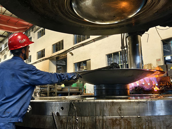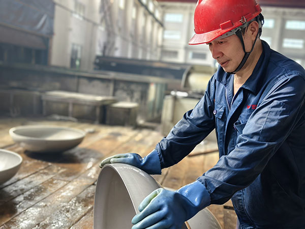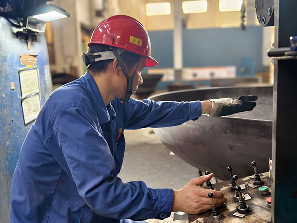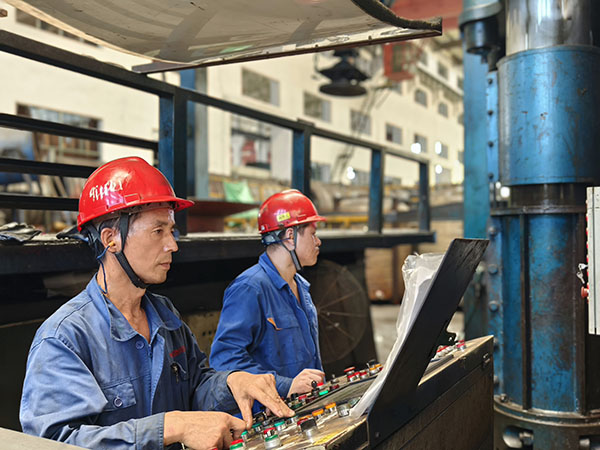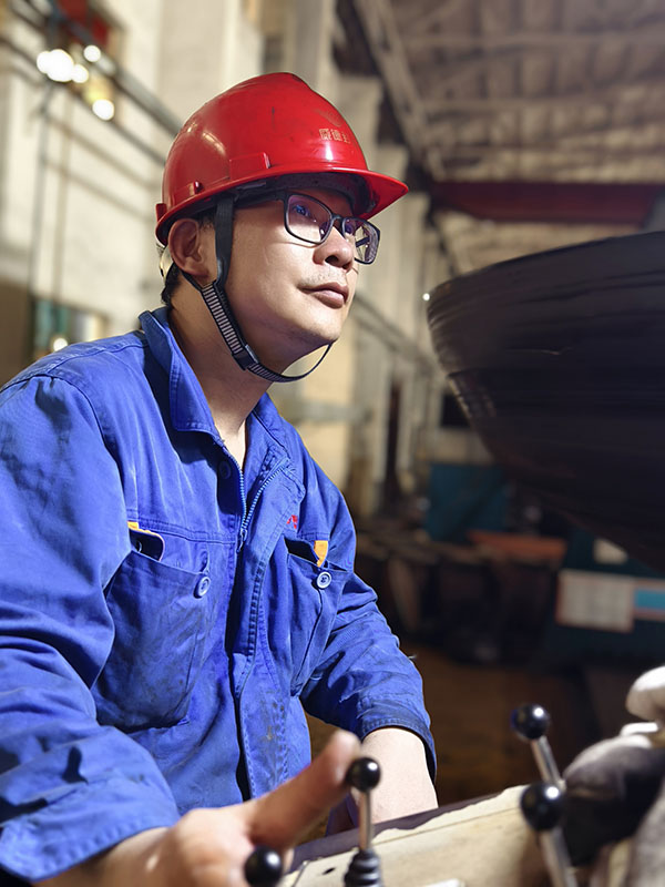 均衡施壓 精準(zhǔn)成形 他們找對(duì)模具,把鋼板放置在相應(yīng)的位置,緊盯操作臺(tái),按下一個(gè)個(gè)像“音符”一樣的操作鍵,猶如技藝高超的“演奏師”,他們就是成形工序的沖壓師傅們?此麄兒?jié)褚律溃止っ鞔_,不一會(huì)兒,一個(gè)產(chǎn)品就成形了。他們自檢內(nèi)在質(zhì)量和外表面的質(zhì)量,測(cè)量板厚的減薄情況、周長(zhǎng)或直徑的數(shù)據(jù),外表面有無(wú)鼓包、皺折、凹坑等。他們的精準(zhǔn)制作,對(duì)后續(xù)的交期提供了有力保障。再來(lái)看看我們的旋壓工序,省勞模梁澤鋒正在旋壓操作,他時(shí)而盯著“音符”,時(shí)而看著隨機(jī)旋轉(zhuǎn)的產(chǎn)品,雙手不停的轉(zhuǎn)換,真的就像在彈奏著一手優(yōu)美的曲子。他在旋壓操作的時(shí)候,是如此的輕松和愜意,沒有一絲的慌亂,真正做到了專心、專業(yè)、專注。他旋出來(lái)的產(chǎn)品基本是免檢的,內(nèi)在質(zhì)量和外在質(zhì)量堪稱“完美”,將“匠心所指 精益求精”發(fā)揮到極致。另一臺(tái)旋壓機(jī)上正在操作的是張彪,他主攻熱旋壓,是個(gè)“多面手”,熱旋壓不忙時(shí),就在冷旋壓等工序幫忙。他也嫻熟的彈奏著“音符”,對(duì)于內(nèi)在或外在質(zhì)量也都做到了心中有數(shù)。要想成為“演奏師”,得經(jīng)過多年的打磨,做到勤勤懇懇為工,兢兢業(yè)業(yè)為匠。