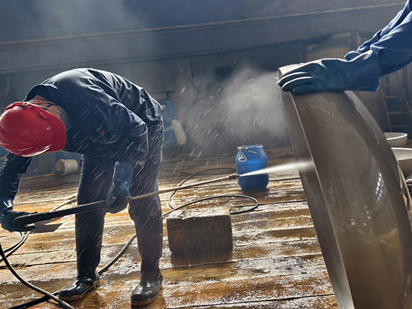 防護(hù)恰當(dāng),揮灑自如 每當(dāng)熱辣滾燙的時(shí)節(jié),我們的“美容師”——酸洗工個(gè)個(gè)是“濕身”作業(yè)?此麄儼床僮饕(guī)程自如得拿著工具對(duì)產(chǎn)品內(nèi)外表面一遍遍清洗著,汗水完全浸透了身上的工裝,他們不言苦,不言累,更不服“暑”的精神真讓人感動(dòng)。由于酸洗工序涉及安環(huán)方面的注意點(diǎn)很多,干活時(shí)不能開風(fēng)扇,實(shí)在扛不住的時(shí)候,趕緊去納涼室去休息一下。就這樣,他們一群人團(tuán)結(jié)協(xié)作,在7、8月份表現(xiàn)相當(dāng)不俗,在質(zhì)量、交期、6S等方面均可圈可點(diǎn)。