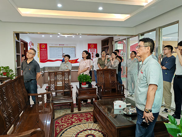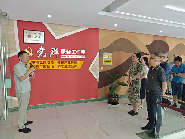 活動第二個議程,由曠達威德龔文偉副書記邀請常州分院各位同志參觀了公司創(chuàng)新成果展示廳、“紅心威德”黨群服務工作室。龔書記現(xiàn)場介紹了公司的產(chǎn)品創(chuàng)新成果、員工服務以及“紅心威德”黨建品牌的創(chuàng)建工作?偨(jīng)理助理吳亦平還帶領大家參觀了車間現(xiàn)場。