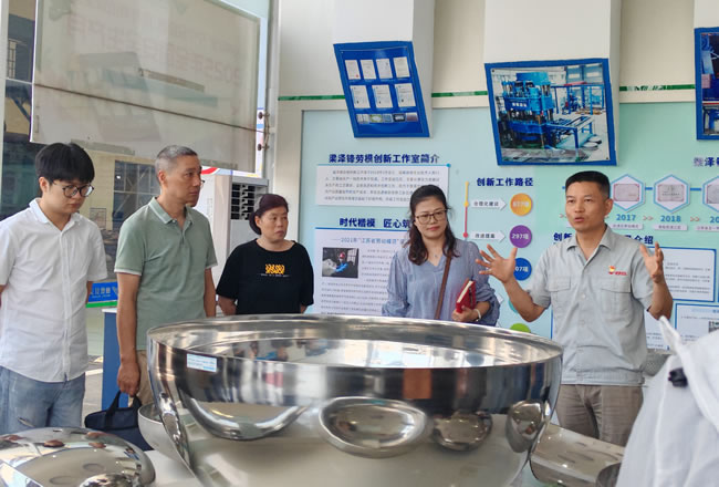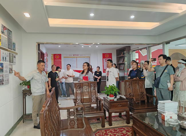 常州市經(jīng)開區(qū)潞城街道產(chǎn)業(yè)工人隊伍建設改革專題培訓班正式開班,6月27日下午培訓班的近30名學員來到常州曠達威德機械有限公司實地學習交流企業(yè)產(chǎn)改工作經(jīng)驗。 參觀曠達威德黨群陣地、聽取曠達威德產(chǎn)業(yè)工人隊伍建設改革經(jīng)驗介紹,是本次潞城街道重點企業(yè)產(chǎn)業(yè)工人隊伍建設改革培訓班的一項重要內容。在曠達威德副總經(jīng)理兼工會主席龔文偉的陪同下,學員們依次參觀了曠達威德創(chuàng)新成果展示廳、梁澤鋒勞模(工匠)創(chuàng)新工作室以及“紅心威德黨群服務工作室”。在黨群服務工作室中,以“一顆忠心、兩個爭創(chuàng)、三項引領”為線索,按時間和類別排列的特色照片墻,詳盡且形象地向來賓展示了勞模風采、工匠故事、創(chuàng)新改革成果以及黨建風采。參觀過程中,大家發(fā)現(xiàn)曠達威德的陣地建設雖不恢宏壯觀,卻內容充實、緊貼實際。這里雖沒有大規(guī)模的黨史、工運史介紹,但因地制宜,質樸地展現(xiàn)了公司在黨支部領導下的奮斗歷程以及應有的社會擔當。并且,在有限的廠區(qū)范圍內,曠達威德能見縫插針地完善陣地建設,延伸服務觸角。樓梯轉角處光彩奪目的榮譽墻、樓梯墻面上“打鐵必須自身硬”的勵志標語等,都彰顯著企業(yè)開展產(chǎn)改工作以來“匠心所至,精益求精”的企業(yè)文化。最后,來訪者穿過明亮的企業(yè)文化展示長廊,在職工學堂里落座,聽取龔總關于產(chǎn)改工作的介紹。