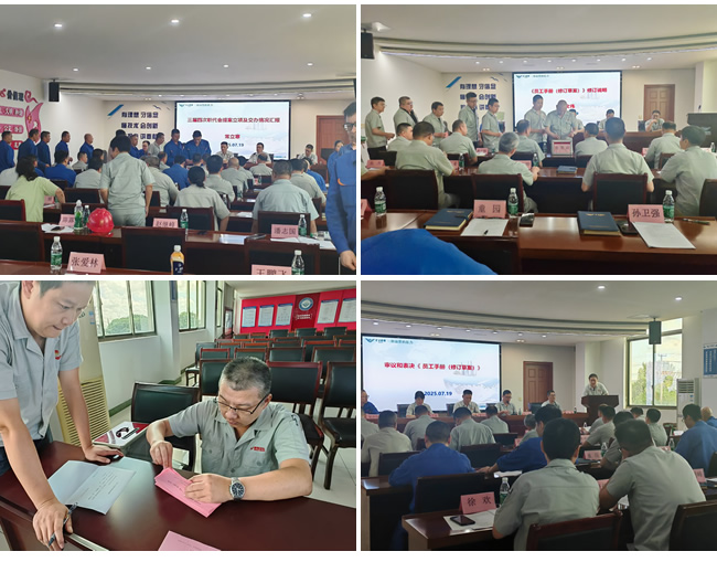在會(huì)議進(jìn)程中,龔文偉副總經(jīng)理就《員工手冊(cè)(修訂草案)》向大會(huì)作了詳盡且清晰的說(shuō)明。他不僅闡述了修訂的背景和目的,還匯報(bào)了草案征求代表意見(jiàn)的情況,并且根據(jù)征集來(lái)的修改意見(jiàn)對(duì)員工手冊(cè)的哪些部分進(jìn)行了更新和更改也做了概述,這一過(guò)程充分體現(xiàn)了對(duì)員工意見(jiàn)的尊重和重視。為了更好地發(fā)揚(yáng)民主精神,切實(shí)保障員工的知情權(quán)、參與權(quán)和表決權(quán),全體代表對(duì)《員工手冊(cè)(修訂草案)》進(jìn)行了無(wú)記名投票表決。代表們認(rèn)真地填寫(xiě)選票,投下自己神圣的一票,這一環(huán)節(jié)充分展現(xiàn)了民主決策的魅力。最終大會(huì)以57票贊成、1票棄權(quán)的結(jié)果通過(guò)了《員工手冊(cè)(修訂草案)》。