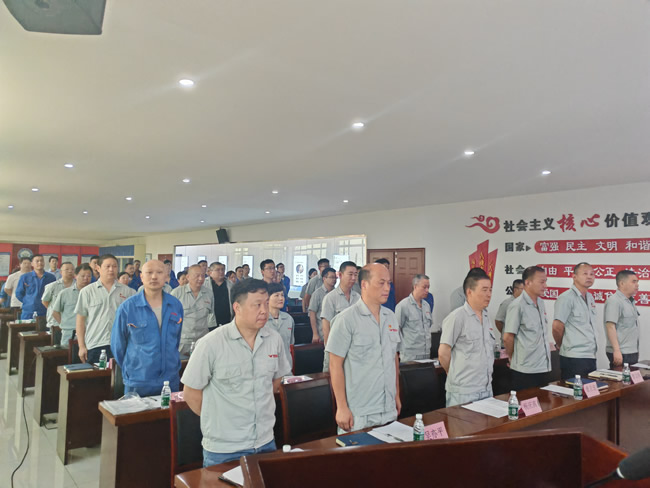 到了8:25,大會(huì)主持人常立寒副總經(jīng)理精神飽滿地宣布正式會(huì)議開(kāi)始。首先進(jìn)行的一項(xiàng)重要工作是清點(diǎn)并報(bào)告代表出席情況,當(dāng)天應(yīng)出席代表人數(shù)為58人,實(shí)際出席58人,符合職代會(huì)代表應(yīng)出席三分之二以上才可以舉行會(huì)議的要求。8:30,全體與會(huì)人員莊重地起立,高唱中華人民共和國(guó)國(guó)歌,那莊嚴(yán)而雄壯的旋律在會(huì)場(chǎng)內(nèi)回蕩,正式拉開(kāi)了本次職代會(huì)的序幕,讓每一位參會(huì)者都感受到了會(huì)議的嚴(yán)肅性和重要性。