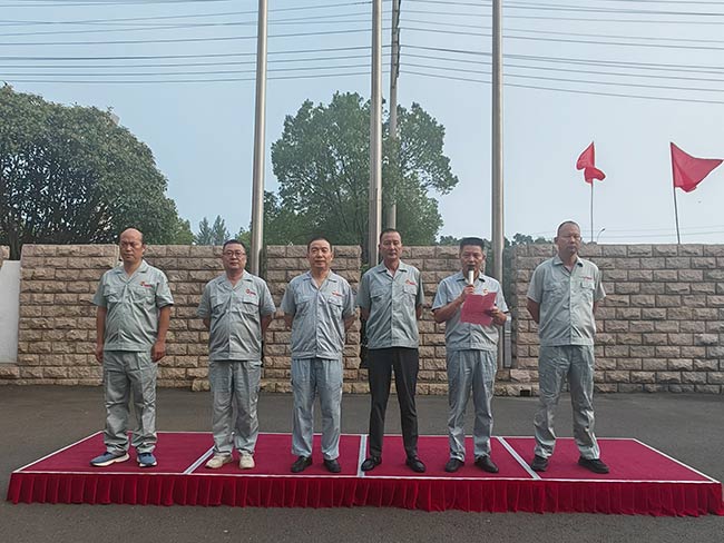 升旗儀式上,楊慶高總經(jīng)理發(fā)表講話,回顧公司發(fā)展歷程,勉勵(lì)全體員工以廠慶為新起點(diǎn),秉持初心、砥礪前行。隨后,各部門依次宣誓:經(jīng)營銷售部以“把握市場(chǎng),拓展品牌”彰顯決心,生產(chǎn)管理部以“安全高效、品質(zhì)優(yōu)異”踐行承諾,技術(shù)開發(fā)部以“開拓創(chuàng)新、追求卓越”勇攀高峰……各部門誓言鏗鏘有力,展現(xiàn)了員工與企業(yè)共成長的堅(jiān)定信念。集體宣誓環(huán)節(jié),領(lǐng)誓人常立寒副總帶領(lǐng)全體員工高呼企業(yè)宗旨與目標(biāo),將活動(dòng)推向高潮。