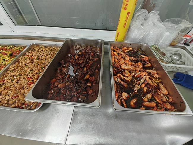 趣味運(yùn)動(dòng)會(huì)剛結(jié)束,正值午餐時(shí)分。今天的威德大食堂借著廠慶的歡樂氣氛,為大家增添了一道豐盛大葷,紅燒肉、撈汁羅氏蝦、兩個(gè)小葷、兩個(gè)蔬菜,任你選擇,讓剛剛參加完運(yùn)動(dòng)的員工們感到能量迅速得到補(bǔ)充,倍感滿足。