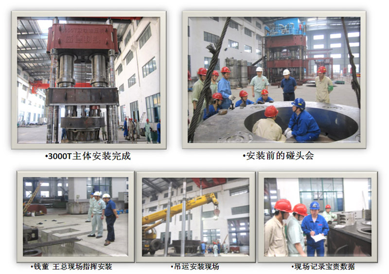 清晨,以錢鳳明董事長、王健總經(jīng)理、楊慶高部長等為首的公司領(lǐng)導(dǎo)早早的到達(dá)了安裝現(xiàn)場,全體技術(shù)工程人員也準(zhǔn)時到達(dá)了施工現(xiàn)場。6:30分,3000噸雙動油壓機正式開始吊裝,在安裝過程中,全體人員、各就各位、按部就班、協(xié)調(diào)一致、通力合作。一塊塊巨大的基座被平穩(wěn)的放在定位線上,一根根參天的立柱筆直的聳立在廠房的中央。安裝采用高精度的“自動安平水準(zhǔn)儀”,經(jīng)過準(zhǔn)確的測量、實行了精確的定位,確保不出現(xiàn)絲毫的偏移。要做到這點,各個部件在安裝時需要絕對保持清潔和光滑,如若否之,會導(dǎo)致安裝時尺寸偏移,影響后續(xù)機器設(shè)備的高效使用,更甚之,出現(xiàn)安全的隱患,所以,為了保證萬無一失,工程技術(shù)人員們對一個個零部件進(jìn)行了精細(xì)的打磨、擦拭,以確保制造出一臺高精度高品質(zhì)的壓制封頭的機器來。這應(yīng)驗了公司的質(zhì)量方針:“遵規(guī)守法,精細(xì)制造,以一流的產(chǎn)品開拓市場;自強不息,科學(xué)管理,以一流的服務(wù)贏得客戶”。