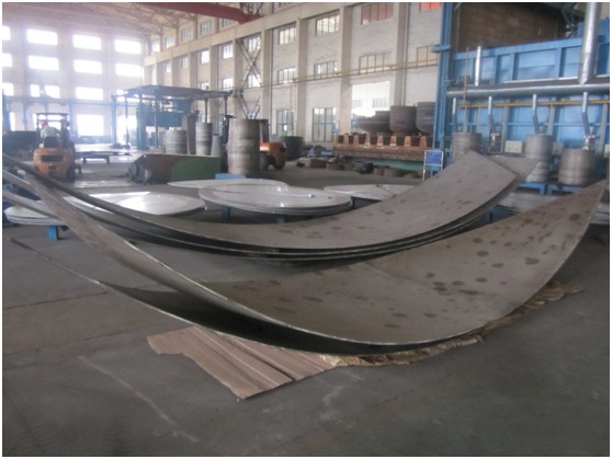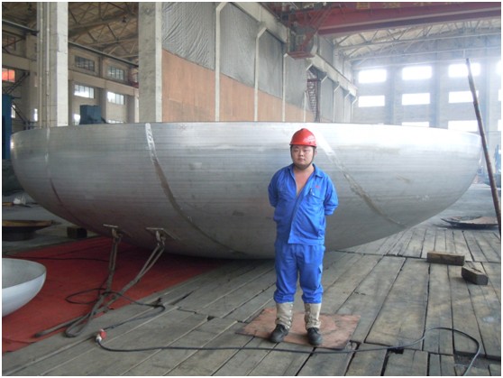緊接著,各部門(mén)齊心協(xié)力,克服了制作過(guò)程中的種種困難,對(duì)每一分片做了精確的下料,并連夜趕制特殊的焊接工裝,以驚人的速度完成了條狀分片的壓制,用精湛的手工焊技術(shù)拼接成半成品,最后至十米旋壓機(jī)直接旋壓成型。期間,每一道工序,無(wú)一不體現(xiàn)出我公司雄厚的技術(shù)力量以及團(tuán)隊(duì)合作精神。