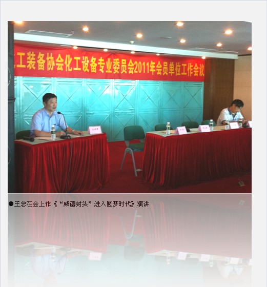 會(huì)上,王健總經(jīng)理作了以《‘威德封頭’進(jìn)入圓夢(mèng)時(shí)代》的主題演講,演講通過(guò)“‘威德封頭’以振興民族產(chǎn)業(yè)為己任、以打造一流品牌為目標(biāo)、以服務(wù)高端領(lǐng)域?yàn)榉较、以確?蛻(hù)滿(mǎn)意為宗旨”四大樂(lè)章詳細(xì)介紹了公司的發(fā)展歷程與所取得的驕人業(yè)績(jī),逐顯“威德封頭”已進(jìn)入擁有自主封頭品牌的圓夢(mèng)時(shí)代。