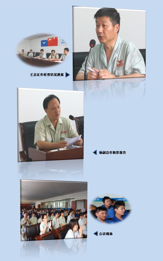 ——記WD 6月份員工大會(huì) 全體員工結(jié)束了千島湖或天柱山兩日游之后,6月8日下午,WD迎來了6月份員工大會(huì)的召開,會(huì)議由龔文偉副總經(jīng)理主持。 會(huì)上,王健總經(jīng)理首先通報(bào)了上個(gè)月的經(jīng)營狀況,5月份共生產(chǎn)封頭845噸,其中不銹鋼占比47.57%,達(dá)402噸,生產(chǎn)封頭3824個(gè)。王總指出,上兩個(gè)月由于受到市場(chǎng)及外界其它因素的影響,訂貨量有所下滑,但5月份由于公司及時(shí)調(diào)整經(jīng)營策略,訂貨較前幾個(gè)月有明顯增加,公司的各項(xiàng)運(yùn)作也相對(duì)有了較大的改觀。王總特別強(qiáng)調(diào),在生產(chǎn)量逐步增加的情況下務(wù)必嚴(yán)把質(zhì)量關(guān),以品質(zhì)開拓市場(chǎng),從而贏得更多的客戶,彰顯“威德封頭”的品牌實(shí)力。 接著,楊建強(qiáng)副總經(jīng)理作了以“用心對(duì)待工作中的每一天”為題的精彩報(bào)告。楊副總在報(bào)告中指出,我們的工作不是為了老板,而是為了自己的前途和未來。在工作中我們不僅獲得了工資,更重要的是我們熟悉了業(yè)務(wù)、積累了經(jīng)驗(yàn)、掌握了技巧、積累了人脈,從而讓自己變得日益強(qiáng)大。同時(shí),我們?cè)诠ぷ髦幸脖仨毦哂胁粩噙M(jìn)取、勇于拼搏的精神,才能學(xué)到更多經(jīng)驗(yàn),獲得更高的提升。他還列舉了一個(gè)個(gè)淺顯的事例進(jìn)行了說明:作為現(xiàn)代企業(yè)的員工,要?jiǎng)?chuàng)造出優(yōu)異的工作業(yè)績(jī),實(shí)現(xiàn)自我和集體價(jià)值的共同提升,就必須具有強(qiáng)烈的使命感、責(zé)任感和集體榮譽(yù)感,擁有良好職業(yè)精神。楊副總最后強(qiáng)調(diào)我們?cè)诠ぷ髦幸槕?yīng)時(shí)代的潮流,及時(shí)更新觀念,常有不進(jìn)則退、退則消亡的憂患意識(shí),用心去對(duì)待工作中的每一天,從而使個(gè)人價(jià)值得到充分的體現(xiàn)。