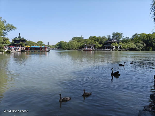 中午吃完飯回酒店休整一下,我們便出發(fā)去了東關(guān)街,這里有很多小吃和特產(chǎn)小店,一路走走停停,嘗了揚(yáng)大酸奶,揚(yáng)州老鵝,聽了小曲兒,倒也過癮。 晚上吃完飯后去乘船夜游古運(yùn)河,船上導(dǎo)游一路講解各景點(diǎn)風(fēng)光,五光十色的游船燈光倒映在湖面,吹著晚風(fēng),十分愜意,一天的游玩也結(jié)束啦。 第二天早上在酒店稍微墊饑吃了一點(diǎn)早飯后,我們又去了富春酒樓吃早茶,有各色包子面點(diǎn),因?yàn)樾谐瘫容^匆忙,沒有好好品味,期待下次再來細(xì)細(xì)品嘗。然后我們?nèi)ビ瘟耸菸骱,作為全?guó)有名的旅游景點(diǎn),在這里確實(shí)感覺到很悠閑自在,周圍綠樹成蔭,沒有讓人壓抑的高樓大廈。吃完午飯又去了何園,這里原先是一個(gè)私人園林,現(xiàn)在這個(gè)時(shí)節(jié)比較多的是綠樹,早些時(shí)候過來應(yīng)該會(huì)看到很多不同的花花草草,想必是另一番意境吧。